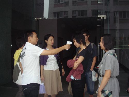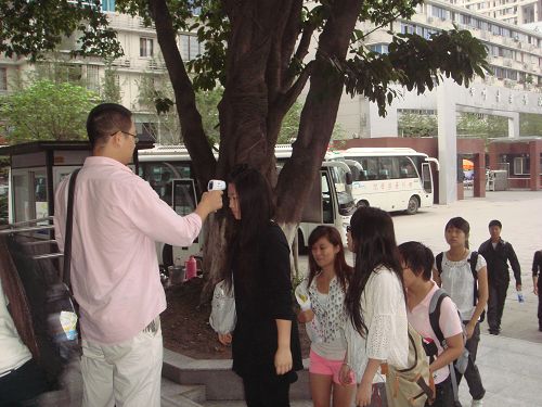 按教育部、卫生部、省市教委和学院的要求,附中对预防甲型H1N1流感工作作了周密的部署和安排。 附中早值班老师和班主任老师每天早晨在教学楼下为师生测量体温,一切正常方可进入教室,对缺勤的师生学校均 一一核实,对因病缺勤的学生及时上报附中学生科,学生科老师做了详细的记录并追踪了解。同时分发防控甲型H1N1流感资料和黑板报宣传,让全校师生对甲型H1N1流感有了高度的警惕和重视。