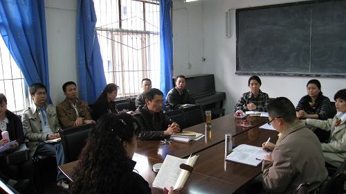 2010年3月19日星期五下午,附中全体老师在附中三楼会议室学习学院院党[2010]7号关于建立重要工作督查督办制度的通知文件精神,随后开展教研活动。