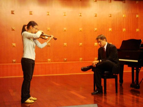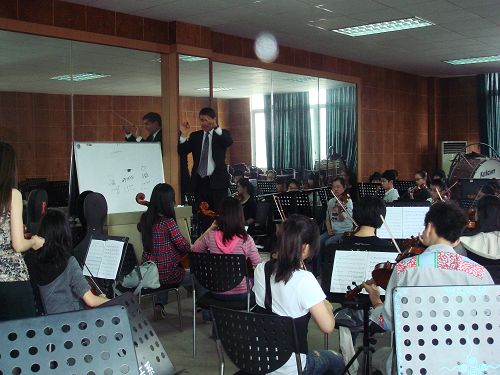 2010年5月13日,美国爱德华艺术学校音乐总监Peter Askim在学院综合楼管弦排练厅为附中爱乐乐团指挥排练,同学们在他生动形象的指挥下精彩地演绎了他所创作的As Glaciers Thaw。5月14日上午,附中学生何宇洁、徐敏嘉、孙麒麟、万鸿杉、吴鹏程、赵聪杰、徐瑨宇、李拨云等参加了他在学院星海音乐厅举办的大师班,同学们非常积极,做了充分的准备,Peter Askim也针对他们专业上的一些问题进行了详细的讲解,通过学习,同学们都受益匪浅。