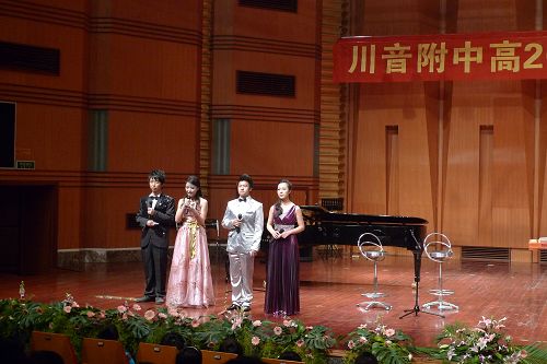 6月21日晚7:30,附中高三毕业音乐会在beat365在线唯一官网大音乐厅隆重举行。音乐会以一曲民乐合奏《欢沁》拉开帷幕,盛装出场的演员们如精灵一般奏出了优美动听的旋律,琴声感染了在场每一位观众的心扉。接下来是一曲美声独唱《我的太阳》,给同学们们带来了如同太阳般温暖的希望,乐音绕梁三日,不绝于耳。整场晚会形式多样,精彩纷呈,有舞蹈《二十一》《如花》,独唱小民谣《童年》《我的家》,管弦乐合奏《人生的旋转木马》,民乐合奏《古今》,古筝独奏《临安遗恨》,以及钢琴独奏《拉赫玛尼诺夫第二钢琴奏鸣曲》和《普罗科菲耶夫第七钢琴奏鸣曲》。音乐会以小合唱《那些花儿》结束,哀而不伤的曲调和充满诗意的歌词似乎把同学有带回了那个白衣飘飘的纯真年代,诉说着如同梦一般的故事。最后伴着《朋友》的歌声,音乐会在欢呼声与赞美声画上了圆满的句号。附中的领导们、老师们和同学们一起上台合影留念,将美好的时刻定格成永恒的回忆。