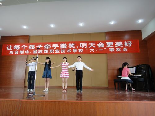 5月31日,附中罗书记、学生科董科长和两位辅导员带上各班的精品节目来到省志翔职业技术学校,和那里的孤儿们一起欢度六一儿童节,同时我们也受到了志翔职业技术学校全体师生们的热烈欢迎。下午3点主题为“让每个孩子牵手微笑,明天会更美好”的联欢会准时开始了,演出前双方校领导都作了亲切的讲话,联欢会总长两小时,节目精彩纷呈,掌声笑语不断,演出圆满结束。最后,附中为志翔职业技术学校的同学们送上了崭新的文具和书籍,祝愿他们节日快乐!健康成长!