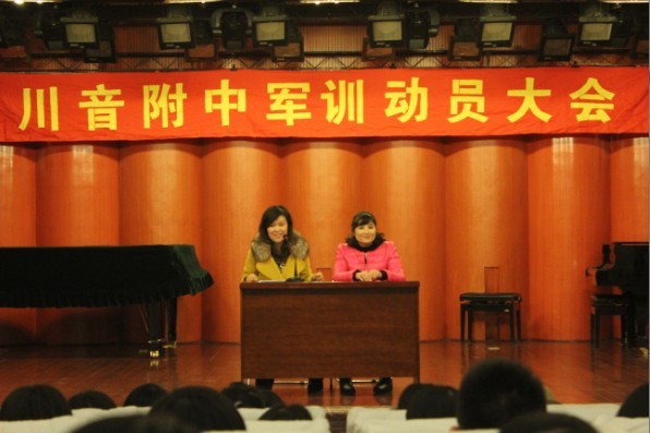 2013年3月1日下午3点,附中在聂耳音乐厅召开了高一年级新生军训动员大会。参加大会的有学生科科长董畅老师、办公室主任陈平老师、军训带队老师、高一各班班主任和即将军训的全体同学。    首先,由陈平老师讲话。陈老师先为同学们介绍了军训的重要性。接受军事训练是每个人的义务,军训可以锻炼人的毅力和独立生活的能力。还可以了解我国的军队及更多国防方面的知识。其中陈老师特别提到,同学们离开家在外独自生活,一定要抛弃浮躁,记住自己是去吃苦的,是去锻炼的。有一句话这样说:“生命有了当兵的历史,一辈子都不后悔。”    接下来是董畅老师为同学们讲解了军训细则和军训管理条例。在细节上讲解得非常清晰,并细心告诉同学们如何准备军训必备物品。最后,强调我们应该增强团队意识,发扬吃苦耐劳的精神,在部队,一切听指挥。并祝愿军训圆满顺利。    这次军训动员大会在大家的热烈掌声中结束。