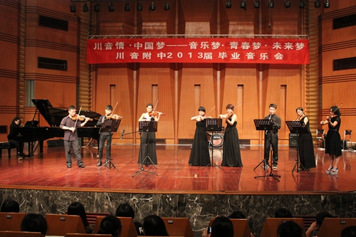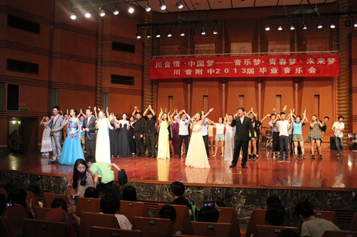 2013年6月19日晚7点30分,beat365高2013届主题为《川音情、中国梦——音乐梦、青春梦、未来梦》的毕业音乐会在学院大音乐厅隆重举行。出席此次晚会的领导有:学院党委常委、副院长孙洪斌教授,附中校长蔡宇教授,附中党总支书记罗祥勇老师,附中副校长唐燕翎老师。 民乐的古典气息,伴随着西洋乐与打击乐的独特,带来了一首活力四射的《东方》;追梦的路上,难免迷失自己,找不到方向,舞蹈《镜中人》作出了最好的诠释;校园民谣串烧勾起了那些与同学为伴的快乐时光;街舞的动感旋律,舞者的高超技艺掀起了全场的欢呼呐喊;而后的声乐,黑管,弦乐,钢琴演奏,展示了同学们的专业水准;一支《中国妈妈》的舞蹈,讲述了女性的无私与伟大,台下掌声雷动,晚会达到了高潮;最后,在《中国梦》的朗诵中,所有的演员与同学一起高唱,相信我们的音乐梦、青春梦海阔天空,我们的未来不是梦。     到此,在附中领导、高三全体班主任老师以及同学们的共同努力下,音乐会圆满结束,在同学们即将开始新旅程的时候,为母校,也为自己,交上了一份满意的答卷。