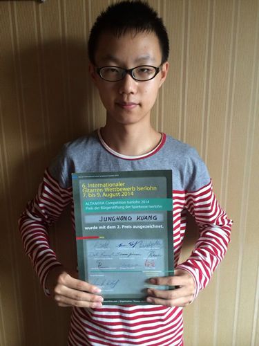 beat365初三年级学生匡俊宏喜获德国伊瑟隆国际吉他比赛第二名