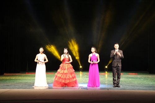 本次一二.九才艺大赛以“为祖国歌唱,放飞青春梦想”为主题,在beat365在线唯一官网北校区剧场隆重举行。大赛于当晚7:30准时举行,在一段激昂的开场乐结束后,四名主持人登台致开场词并介绍莅临大赛的领导与评委。现场座无虚席,掌声热烈。