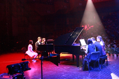 2015年6月23日晚七点半,2015届“致青春、为梦想前行”附中毕业音乐会正式开始。不同以往的音乐会,这次音乐会以出其不意的快闪小乐团形式开场,寓意着附中学子的团结合作精神。新颖的开场让人眼前一亮,在欢呼声与热烈的掌声中,音乐会正式拉开了序幕。四位主持人登场,在饱含深情的开场白后,第二个节目开始了,精彩的民乐重奏彰显了附中人的积极向上,自由创新的精神。而后,更是有炫丽的舞蹈,激烈的斗琴,辉煌的重奏和天籁的歌声。每一个节目都有着精妙的合作,恰时的衔接,优秀的专业素养。伴随着观众们的热情欢呼与表演者们的投入展现,让每一个人无不感受到附中高三学子对于青春活力的完美诠释。在节目最后,所有同学到台上齐唱海阔天空。大家一起欢笑、流泪,相互拥抱、相互感谢、相互祝贺,每个人的心中都充满着不舍,可是却又对未来满怀希望,我们知道,有梦想,我们便会不断前行!