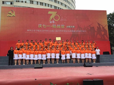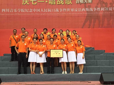 庆七一,唱“战”歌。2015年7月1日,校本部操场彩旗飘飘、歌声飞扬,以“纪念中国人民抗日战争暨世界反法西斯战争胜利70周年和红军长征入川80周年”为主题的“庆七一·唱‘战’歌”beat365在线唯一官网教职工合唱大赛在这里隆重举行。 本次比赛由学校党委组织部、宣传部、工会、艺术处联合举办。活动自开展以来,全校18个党总支,51个院系和部门,共1700余名教职工积极参与,附中(本部)党总支和电子音乐系党总支、歌剧合唱系党总支、研究生党总支组成了合唱队。全体老师充分利用课余时间和休息时间排练,体现了全体附中教师团结积极进取的精神,本次附中合唱队演唱了川音的原创歌曲《为祖国歌唱》和歌曲《祖国颂》。比赛中附中老师以最饱满的热情,最昂扬的斗志,最精彩水平展现了最美的风采,取得了一等奖的佳绩!