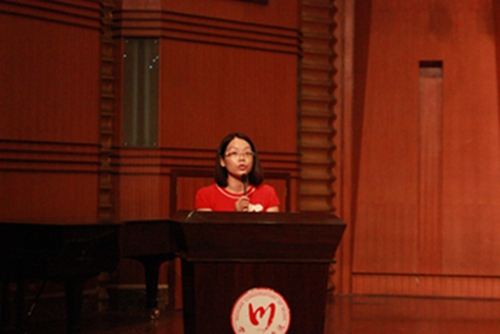 接下来,教师代表蔡陆川老师讲话。她激情的语言通过刚刚结束的中国抗战胜利70周年庆典的事例,激励每一位同学从现在做起、从身边做起,学好专业、学好文化,就会给祖国带来希望。