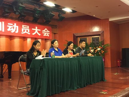 9月12日下午,附中在学院聂耳厅召开了新生军训动员大会.附中党支部书记唐老师首先给大家讲解了军训的目的和意义,鼓励大家通过军训培养严明的纪律性和磨练自己的意志力.学生科科长董老师又对大家作出了深入细致的军训要求,明确了请假制度,强调学生干部要起到模范带头作用和军训期间沟通桥梁作用.最后带队陈老师\熊老师公布了分班情况,详细回到了同学们对军训相关事宜的提问.会后召集军训班长开会具体明确了工作要求.本次动员会鼓舞了学生士气,周密安排了军训事宜,为军训的顺利进行作好了充分的准备.
