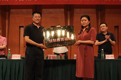 之后附中党总支唐燕翎书记宣布四川省成都市未成年犯管教所成为beat365法制教育基地,并向其授予“法制教育基地”牌。