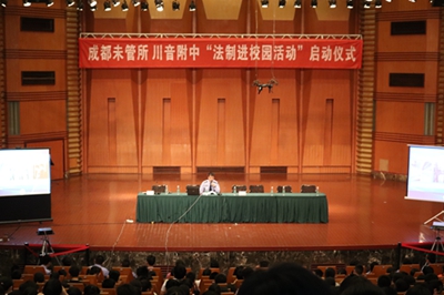 首先由成都未管所刘英斌所长讲话,宣布“法制进校园活动”正式启动。刘所长介绍了成都未管所及其工作职能,并讲述了预防未成年人犯罪的重要性,希望同学们能够知法、懂法、守法,不要因为一时冲动而抱憾终生。