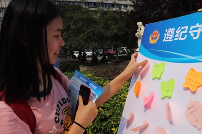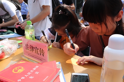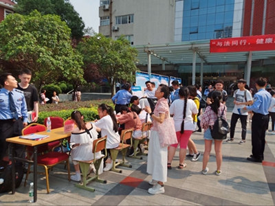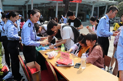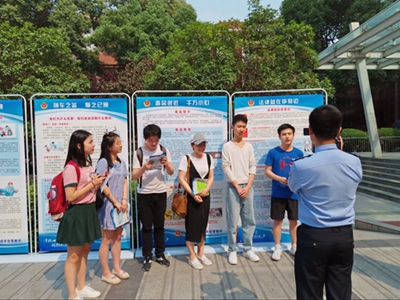 在学院聂耳广场,成都未管所的青年民警设立了咨询宣传点,为同学们进行了法律宣传、法律咨询、活动留言,并就此次“法制进校园”活动采访了部分老师和同学,为此次活动画下了圆满的句号。