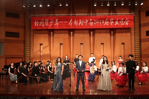 令人心情澎湃的2019届川音附中高三毕业音乐会于6月21号晚7:30如期举行。到场的来宾有学院分管领导文院长,学校领导老师和附中各年级的同学以及部分家长。 毕业音乐会由一个朗诵节目《花开时节》开场,娓娓道出了高三学子在附中生活的点滴以及对未来的期望,随后主持人上场,宣布“恰同学少年——2019届附中毕业音乐会”正式开始。随着一个个节目的亮相,毕业音乐会的气氛逐渐推向了高潮,最后在一曲《我相信》中结束了整场音乐会。 这台音乐会展示了学生们的学习风采,专业技能以及心理素质,节目形式多彩多样,有人声朗诵,乐器重奏,乐队,情景剧以及歌唱节目,这是高三学子最后一次将青春挥洒在川音附中的舞台上,相信他们也会在未来人生的道路上不顾艰难险阻,逐梦扬威,如同开场节目的朗诵词那样“我们仍将逐梦前行!”