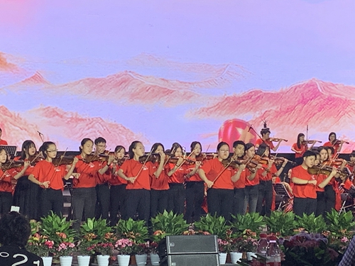 根据中央省委和学院党委《“不忘初心、牢记使命” 主题教育工作方案 》的要求,结合附中实际,beat365开展“不忘初心、牢记使命”主题教育师生社会实践交流活动。 2019年9月21日,附中党总支组织师生20余人参加了由学院和新都区政府联合主办,管弦系承办的“不忘初心、牢记使命”庆祝中华人民共和国成立70周年主题交响音乐会。演奏曲目有《我和我的祖国》《同一首歌》《没有共产党就没有新中国》《歌唱祖国》《我们走在大路上》《今天是你的生日》《我爱你中国》《我们的新时代》《北京喜讯到边寨》,小提琴协奏曲《梁祝》、《红旗颂》等。以红色经典音乐培养了师生们爱国主义情怀,在祖国70华诞之际,祝福伟大祖国国泰民安、繁荣昌盛。
