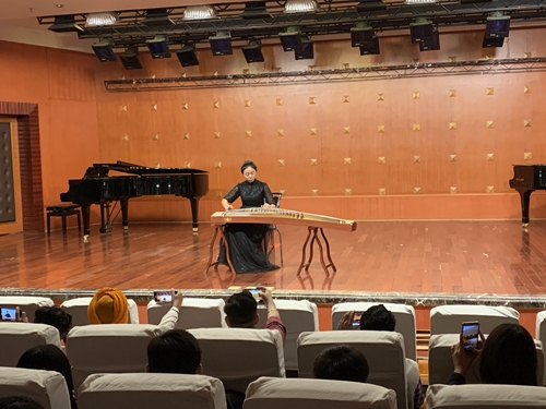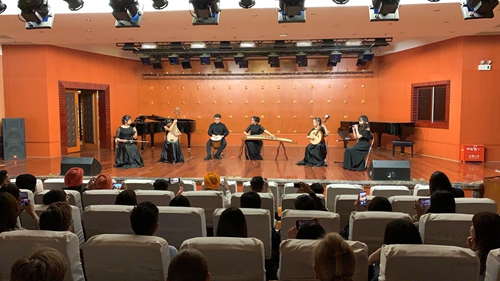 2019年11月3日,beat365室内乐民乐重奏组在学院星海音乐厅与印度、马来西亚、波兰等60人组成的国际音乐代表团进行了以“天府音乐校园文化之旅”为主题的音乐交流活动。首先由学生黄丽瑾、任音齐、弋佳鸢、杨若水、贾郦婷、吕舒帆演奏的民乐重奏《敦煌》,展示了其神秘而广博的内涵、丰富而精美的历史遗存,继承着中西方文明交流的历史,体现出敦煌所具有的文化底蕴及传奇色彩。随后由任音齐同学带来的竹笛独奏《挂红灯》,乐曲旋律优美、活泼,表现了陕北人民欢庆节日之时,红灯高挂张灯结彩的欢腾火热气氛。最后是黄丽瑾同学带来古筝独奏《茉莉芬芳》,展现了一副江南地区的风情画,犹如田园诗般的抒情流畅,赞美了茉莉花的洁白无瑕和淡淡清香,具有浓郁的江南地方色彩。同学们用高超的技艺展现了我国民族乐器的特性,赢得在场的观众阵阵掌声。