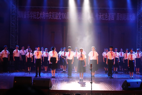 每个班级都为此次比赛进行了精心的准备,从作品的创作到舞台的艺术呈现,每个同学都满怀热情、用最诚挚的心去打磨每一个细节、推敲每一个字句、斟酌每一个音符,将自己对学校、对党、对国家的热爱用朗诵的形式抒发出来——这不止是为了比赛,更是为了抒发自己赤诚的爱国之心,为了体现当代中国少年的青春力量。比赛作品既有精妙的文字,又有乐曲伴奏、舞台变幻,呈现出多样的形式、不同的风格。无论是慷慨激昂、还是深情动人,每一种都展示着附中学生的风采,他们以满腔热忱为党的一百岁生日献礼,振奋人心,赢得全场观众一次次雷鸣般的掌声。