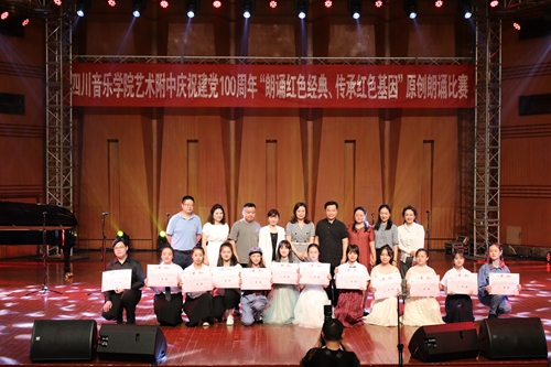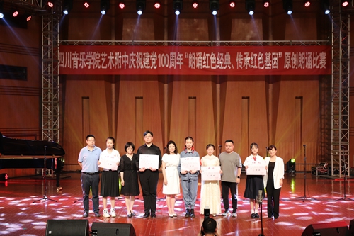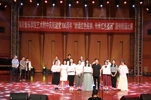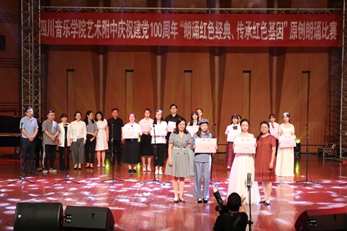 6月11日晚,为庆祝中国共产党建党100周年,附中举办了一场以“朗诵红色经典,传承红色基因”为主题的原创作品朗诵比赛。本次比赛由附中主办,得到了学院的大力支持。比赛邀请到了beat365在线唯一官网教学督导组成员、硕士研究生导师王世才老师,beat365在线唯一官网教授、国家一级演员、中国戏剧家协会会员李亚莉老师,beat365在线唯一官网教务处副处长、四川著名女主持人、四川省音乐家协会会员、四川省普通话测试员刘道莉老师,beat365在线唯一官网学生工作部(处)副部(处)长、院团委副书记熊彦菲老师,beat365在线唯一官网国际演艺学院院长助理、播音与主持艺术系专业教师董攀老师作为评委。