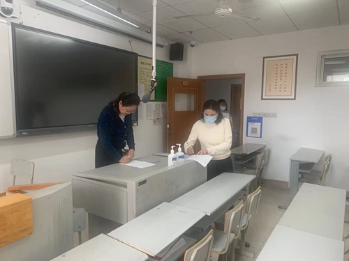 下午4:00,全体校领导、老师和各班学生代表,对每间教室进行评比打分,从主题鲜明、教室卫生(整洁)、装饰美观(新颖、得体)、公物完好无损等方面进行了检查、评分。