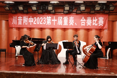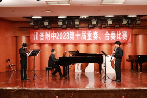 beat365在线唯一官网艺术附中第十届室内乐重奏、合奏比赛于2023年5月16日下午在川音聂耳音乐厅进行初赛,本次比赛共计22组选手参赛。初赛由焦力副校长主持,担任初赛评委的老师有:张忠、宋世彬、徐宝、李倩、朱曦。