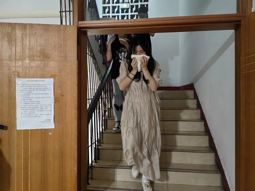 首先学校请来了学院保卫处的老师来为同学们讲解灭火器的使用、在宿舍如遇突发状况(如火灾等)应如何从容处理等相关知识,然后进行了演练,同学们都积极配合,按要求完成了相关步骤。