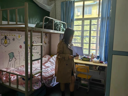 评比过程中,老师们认真走访每一间寝室,不仅查看了每间寝室的布置,而且还细心地检查寝室每处的卫生情况。对于存在卫生或安全隐患的寝室,及时细心地记录下问题,以督促学生进行整改。