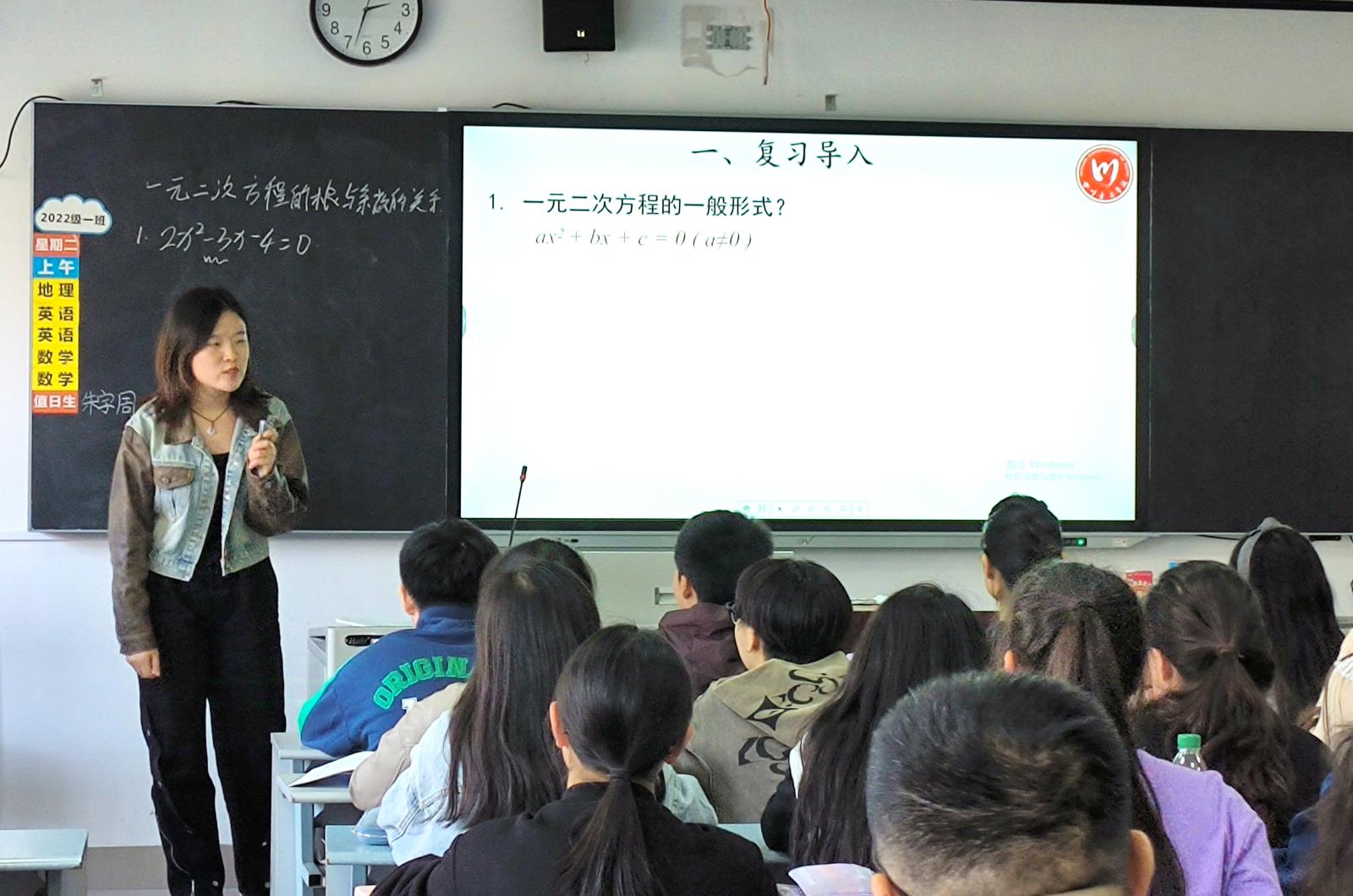 第一节新都校区的王瑞老师带来数学课——《一元二次方程的根与系数的关系》,王老师教学思路清晰,教学设计有层次,重点突出,逻辑严密,删繁就简,易于学生理解,师生互动,取得了良好的教学效果。