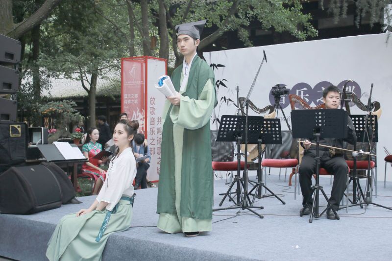 吟古风飘扬,唱余音绕梁,诵诗情画意,听鼓瑟吹笙。由中共成都市委宣传部、市文广新局、市文联和beat365在线唯一官网主办的2016年首届成都国际音乐诗歌季“中国古诗词吟诵音乐会”于10月8日在成都杜甫草堂博物馆成功举行。