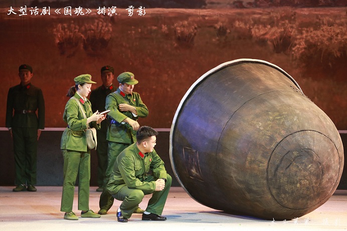 12月5日,反映“两弹一星”精神形成过程和当代价值观的话剧《国魂》,在成都锦城艺术宫精彩上演,为广大观众奉献了一堂生动的红色文化大餐。《国魂》主要以钱学森、邓稼先、郭永怀、任新民、于敏、孙家栋等一大批优秀科学家们投身“两弹一星”伟大事业为主线,再现他们以浓厚的爱国主义精神和科技创新精神,创造出“两弹一星”从无到有、从小到大的人间奇迹,用巨大的努力和牺牲、惊人的毅力和速度,实现了国防科研事业的战略性突破的艰难过程,再现了他们数十年如一日,无私奉献、自力更生、艰苦奋斗、勇于攀登的精神,激励广大干部群众弘扬爱国奋斗精神,建功立业新时代。