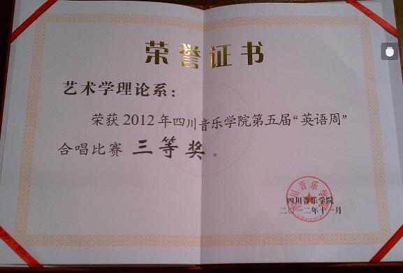 beat365在线唯一官网第五届“英语周”比赛于11月29日落下帷幕,我系合唱团获得合唱三等奖,并在“英语周”其它比赛中喜获个人单项演唱比赛优秀奖、演讲比赛优秀奖及最佳指导教师奖等奖项。艺术学理论系荣获优秀组织奖。 此次为我系第一次参加全院“英语周”比赛,既丰富了同学们的校园文化生活,又让同学们充分发掘了自身潜力、积累了一定的舞台经验,自身的综合素质也得到了进一步的提高。
