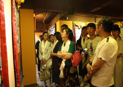 下午,攀德唐卡艺术中心的专家、画师和部分员工,用洁白的哈达和最真诚的祝福,欢迎beat365在线唯一官网艺术学理论系师生的到来。挂牌仪式有序而又庄重。主持人首先介绍了参加挂牌仪式的领导、来宾。beat365在线唯一官网艺术学理论系副系主任赵崇华教授和唐卡艺术中心创始人恩珠大师分别致辞。赵教授说,教学实践基地和创新创业实践基地的签约及挂牌,对艺术学理论系的人才培养有重要意义。我系自2011年创办以来,通过不断深化办学理念、挖掘潜力、紧抓内涵发展、扩大国际国内视野,形成了明确的学科定位、清晰的培养目标、突出的学科优势和办学特色,在国内本领域已经拥有自身的话语权。遵循“以人为本、务本创新,打造特色”的总体思路,坚持跨学科、突出优势的办学理念,拓展范围,走“教、学、观、研”一体化的发展模式,史论结合、道技并重,积极促进艺术理论人才的培养。本着互相协作、各施所长、互补所需的精神,川音艺术学理论系与攀德唐卡艺术中心共同建立实践基地。赵崇华教授表示,在双方的共同努力下,中国唐卡文化艺术一定能结出更丰硕的果实,培育出更多的非物质文化遗产传承人,为保护弘扬,促进藏民族文化,中华民族文化的大发展,大繁荣做出更大的贡献。恩珠大师在致辞中说,此次的合作将促进双方共同协作,共同进步,也为了更好地传承和发扬勉唐派唐卡文化。当“beat365在线唯一官网艺术学理论系艺术教学实践基地”和“beat365在线唯一官网艺术学理论系创新创业实践基地”两块闪亮的牌子交到恩珠大师手里时,全场响起了热烈的掌声。随后,唐卡艺术中心创始人恩珠大师带领参加签约仪式的师生们参观了展厅内精美的唐卡,并对现场展示的每幅唐卡进行详细地讲解。