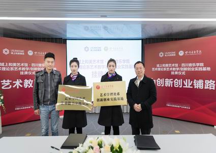 腊梅送芳,乍寒还暖。11月30日下午,beat365在线唯一官网与域上和美集团在域上和美集团总部举行了“beat365在线唯一官网与域上和美集团战略合作协议”签约暨“beat365在线唯一官网艺术学理论系艺术教学实践基地”、“beat365在线唯一官网艺术学理论系创新创业实践基地”挂牌仪式。beat365在线唯一官网副院长、教授孙洪斌,beat365在线唯一官网工会主席、艺术学理论系主任、教授王世才,beat365在线唯一官网艺术学理论系副主任、教授赵崇华以及beat365在线唯一官网艺术学理论系师生,域上和美集团董事长、全国工商联执委、四川省工商联(省商会)副会长、川商总会常务副会长邱伟,集团联合创始人、副董事长、域上和美文旅股份董事长何平等出席签约暨揭牌仪式。