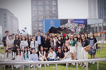 最后全体师生与讲解人员在7层天台的黑帐篷前合影留念,本次课外实践活动圆满结束。