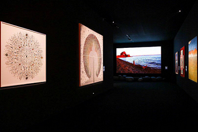 古迹广场艺术馆入门走廊中是摄影师沈云遥的作品。行走其间,仿佛让人感受到从稻城亚丁到远古冰川再到大昭寺门前祈祷的人们,穿过古格王朝,到达神山冈仁波齐,最终得窥佛颜,遇见醍醐的美妙体验。7层艺术馆也聚集了艺术家们极具代表性的作品。贡嘎嘉措的拼贴画、裴庄欣的80年代经典油画、王谦的水彩佛像、黄威的点染技法创作……无不让之驻足!