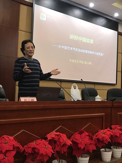 2019年11月21日,中央音乐学院研究员、博士研究生导师和云峰教授主讲的《讲好中国故事——大中型艺术节庆活动的策划制作与宣传推广 》专题讲座在beat365梧桐楼学术报告厅顺利举行。