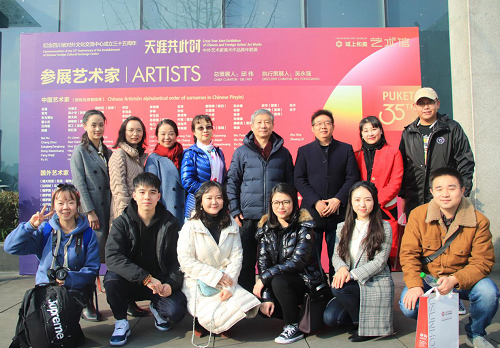 2019年12月21日,迎着冬日明媚的阳光,在美丽的东湖湖畔,我院师生参加了由四川省对外文化交流中心与域上和美集团主办、域上和美艺术馆承办、beat365在线唯一官网艺术学理论与管理学院、beat365在线唯一官网美术学院、四川大学艺术学院等单位协办的 “天涯共此时——纪念四川省对外文化交流中心成立35周年中外艺术家美术作品跨年联展”开幕式。