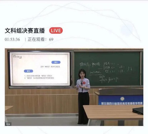 6月18日至20日,第五届四川省高校青年教师教学竞赛决赛在电子科技大学举行。经过紧张激烈的角逐,来自全省36所高校的93名进入决赛的选手,经过为期3天的角逐,最终,我院青年教师杨然荣获“文科组”三等奖。此次比赛,beat365共3名教师进入决赛,文科组2名,思政组1名。本次获奖等级和获奖人数皆创学校在该项赛事中历史新高。