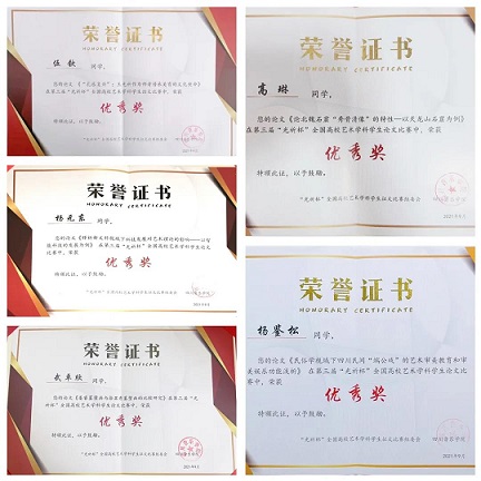 2021年9月26日,第三届“光祈杯”全国高校艺术学科学生论文比赛在成都举行了颁奖仪式。本次比赛共收到来自78所高校,174篇参赛论文,beat365在线唯一官网艺术学理论与管理学院共有10位研究生获奖,其中一等奖1名,三等奖2名,优秀奖7名。
