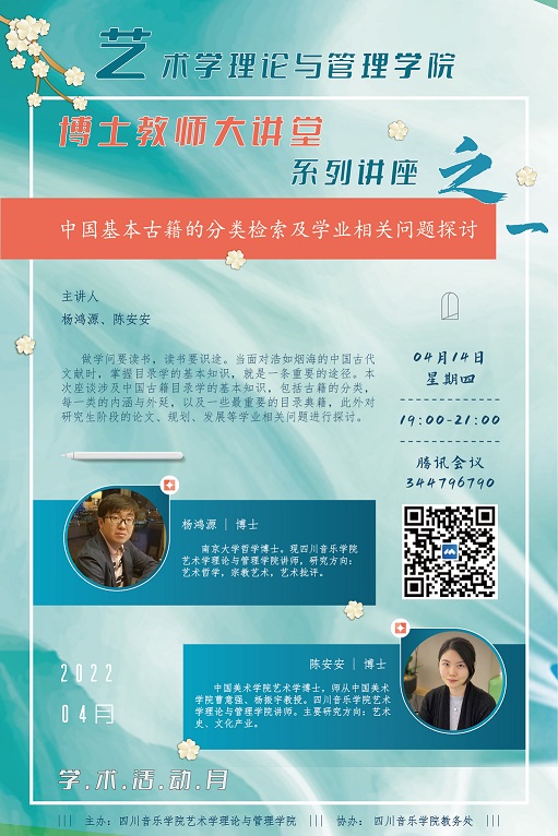 为进一步提升我院师生的在线学习热情和学术氛围,发挥理论学院的学术资源与优势,艺术学理论与管理学院推出的博士教师系列专场讲座将于4月14日开展首场“线上大讲堂”系列讲座,讲座将通过腾讯会议推出。