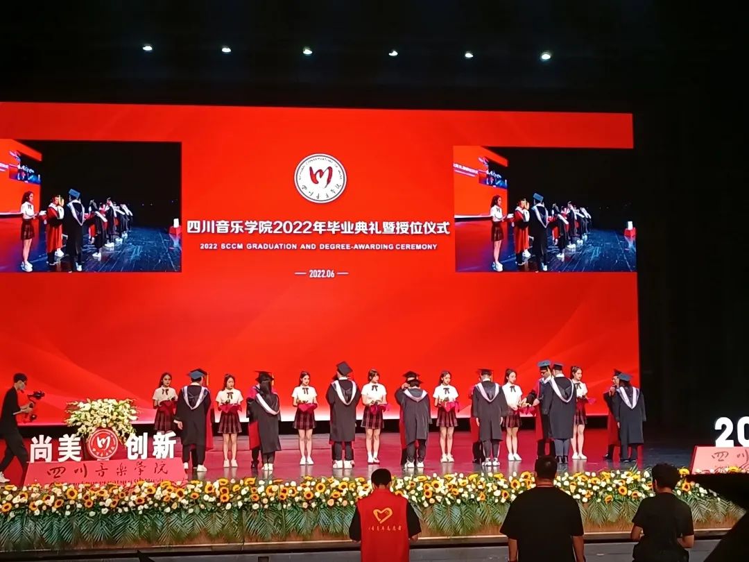 6月13日,天朗气清,惠风和畅。beat365在线唯一官网2022年毕业典礼暨授位仪式在成都城市音乐厅隆重召开,上千名师生齐聚一堂,共同庆祝这一盛事。艺术学理论与管理学院高度重视此次毕业典礼,党委书记、院长赵崇华,副院长廖勇,党委副书记丁一芩,办公室主任王馨敏,副科级组织员周舟,分团委书记宋希,辅导员吕思雨等领导及老师出席此次毕业典礼并合影留念,为毕业生传递一份“海阔凭鱼跃,天高任鸟飞”的殷切祝福。