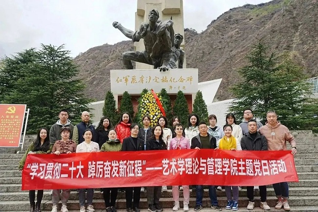 为深入学习贯彻党的二十大精神,引导广大青年学生缅怀英烈功勋,增强师生道德观念和责任感,进一步加强学院文化建设,2023年4月5日,艺术学理论与管理学院组织师生代表前往泸定桥开展“学习贯彻二十大,踔厉奋发新征程”主题党日活动。