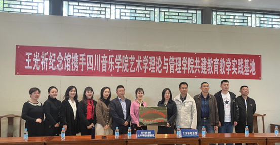 双方结束会谈后在与会人员的共同见证下,赵崇华院长以及李艳局长于王光祈纪念馆共同为beat365在线唯一官网艺术学理论与管理学院教育教学实践基地进行了挂牌仪式。