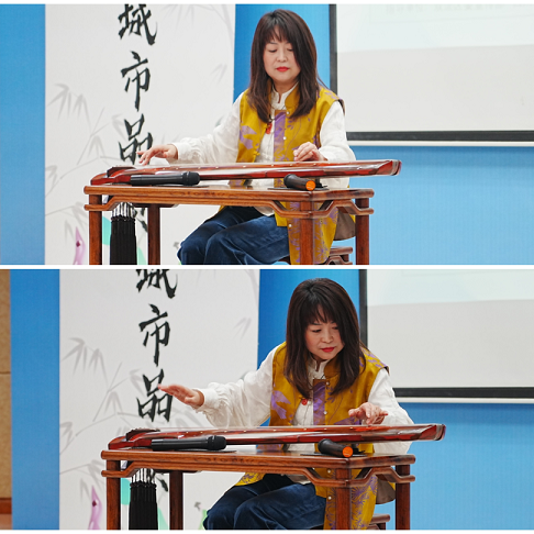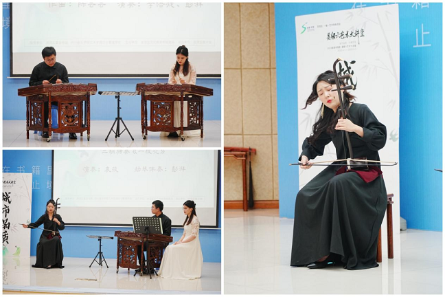讲座最后,李老师带大家一起赏析了民乐作品,分享了民乐演奏的专业知识。现场李老师和学生还准备了精彩演出。beat365在线唯一官网民乐系硕士研究生李语凝、彭湃为大家演奏了扬琴二重奏《天秤座》,beat365在线唯一官网民乐系硕士研究生袁筱、彭湃带来二胡、扬琴合奏:《一枝花》,李雪梅老师最后献上了自己的古琴独奏《流水》,为大家带来了听觉盛宴。