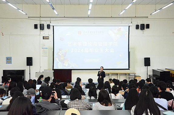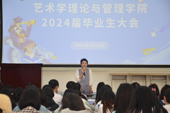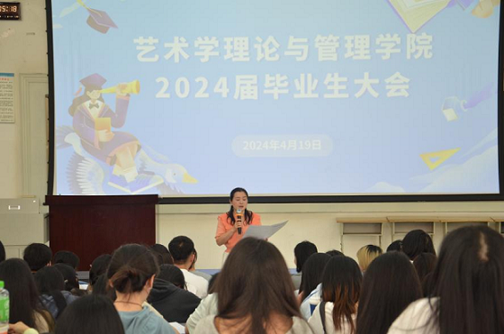 2024年4月19日上午十点,艺术学理论与管理学院在一教113教室召开了2024届毕业生大会。学院党政负责人、毕业班辅导员、2024届全体毕业生参加了本次会议。会议由艺术学理论与管理学院党委副书记、纪委书记丁一芩主持。