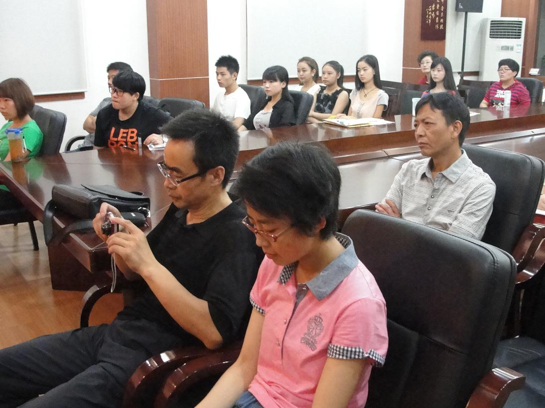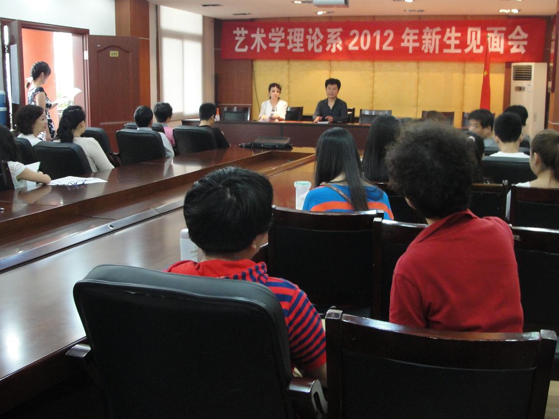 9月7日上午十点,阳光灿烂,空气清新。我系在办公楼一楼会议室举行了“艺术学理论系2012年新生见面会”,系主任王世才教授、副系主任赵崇华教授、全体教职员工、文化产业管理专业所有新生及家长参加了会议。 会议由系主任王世才教授主持,王主任首先向我系新生的到来表示热烈欢迎,对家长们致以衷心的祝贺!然后,他向在座的各位同学及家长详细地介绍了我系的基本情况,并鼓励同学们明德博学、尚美创新! 副系主任赵崇华教授言简意赅地表达了对新生及家长们的欢迎,并衷心地祝贺同学们在今后四年的学习生活中健康、快乐! 会上,老师、同学和家长们进行了亲切交谈,还就新生们今后的生活和学习计划交换了意见。最后会议在和谐、愉快的氛围里圆满结束。