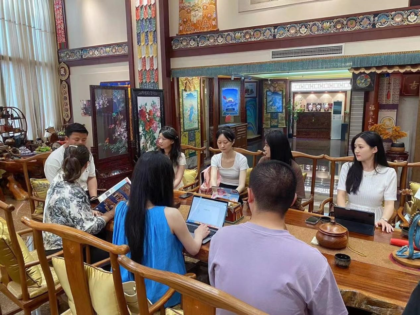 本次研学实践活动中拉孟绘画艺术交流中心的工作人员为我院师生介绍了目前全国在《格萨尔》文化保护方面取得的成果、该艺术交流中心近年来在传承、创作、传播以格萨尔史诗为题材的唐卡方面取得的成就、详细介绍了所创作的唐卡作品中格萨尔人物形象与传递的精神内涵、拉孟绘画艺术交流中心学员传习制度以及学员规章管理制度。我院师生就“传承《格萨尔》文化,建设中华民族现代文明”为主旨对《格萨尔》的时代内涵与现实意义,以及以格萨尔史诗为题材的唐卡作品传递出得艺术美学价值等展开了深入的探讨。