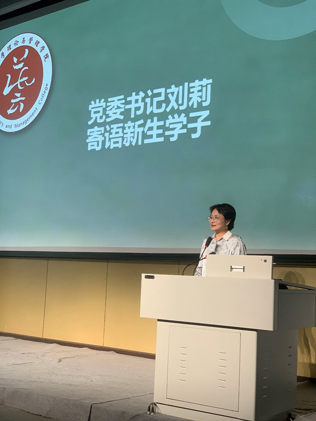 随后,陈洁副院长向同学们介绍艺术史论专业。我院的艺术史论专业具有精心设置的课程体系与聚焦川音优势的专业特色,注重“艺术理论+实践”的复合型人才培养,既有丰富多样的专业主干课与选修课,也有观摩性、互动式教学的实践教学课。陈副院长在结尾借用“青青园中葵,朝露待日晞。”祝愿同学们在川音度过青春美好时光,号召师生一起相互学习,相互共勉,努力成为一个有家国情怀、有人性的善意,有艺术的悲悯 温暖的人。