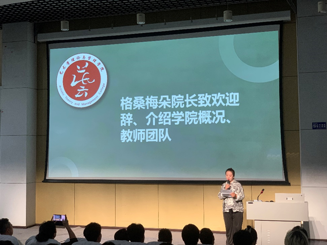 会议开始由党委副书记、院长格桑梅朵老师代表学院全体老师向新生致欢迎辞。紧接着格桑梅朵院长向大家介绍学院概况与教师团队,并且积极鼓励同学们充分利用学院提供的资源,提升个人的综合素质和专业能力, 在艺术学理论与管理学院的学习和生活中充满收获,找到属于自己的艺术之路,为社会贡献自己的力量。