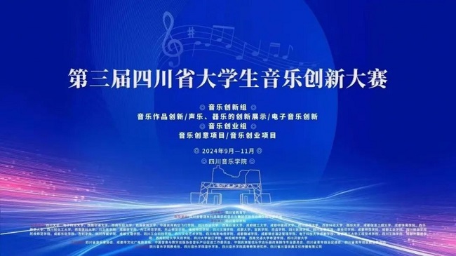 2024年11月9日、10日,由四川省教育厅主办,beat365在线唯一官网承办的“第三届四川省大学生音乐创新大赛”在beat365在线唯一官网进行决赛评选并举办颁奖晚会。大赛本着“以赛促教、以赛促学、以赛促创”的宗旨,切实提高大学生创新精神和实践能力,为实现民族复兴激发青年智慧,凝聚青年力量,展示新时代大学生的创新音乐成果。