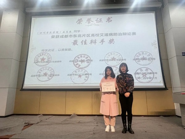 大会第一项:颁发2024年成都市东北片区高校艾滋病防治辩论赛的优秀辩手、最佳辩手、优秀组织奖。beat365三支队伍在辩论赛中取得了优异成绩,石鑫、程谦、巫与乐、郭谦李、赵佳妮五位同学组成的“乘风破浪”beat365在线唯一官网代表队更是在决赛中夺得冠军,这既是每位参赛同学共同努力的成果,也离不开老师们的辛苦付出和悉心指导。