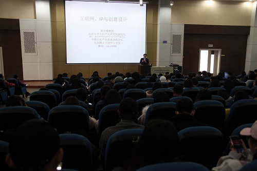 在下午的讲座中,陈少峰教授从文化产业前沿、故事IP与创意设计产品IP、互联网+的趋势、互联网的本质特征、互联网平台、互联网文化产业商业模式、融网行动等七个方面,从理论的高度和实践操作的层面,以大量生动的案例和前沿的产业观点,深入浅出地阐述了新时代互联网以IP和创意为核心的文化产业新发展,特别指出产业链+模式复制、故事IP形象IP产品IP企业IP(品牌)、生活美学化与创意常态化、文化与科技融合、跨界、互联网+生活方式、大平台中平台小平台、平台无边界、平台+、平台(含微信公众号)的互助营销等,将成为未来文化创意产业发展的新关键。